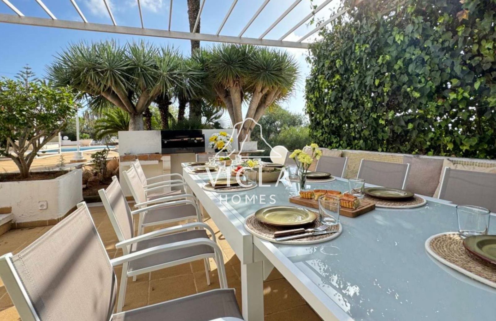 En el exterior se encuentra una espectacular piscina de gran tamaño rodeada por una amplia terraza, perfecta para relajarse o disfrutar de reuniones al aire libre. El jardín mediterráneo cuenta con naranjos y limoneros, además de dos zonas de barbacoa que completan este espacio pensado para el disfrute. En esta zona exterior también se encuentra un práctico lavadero y un área de almacenaje.